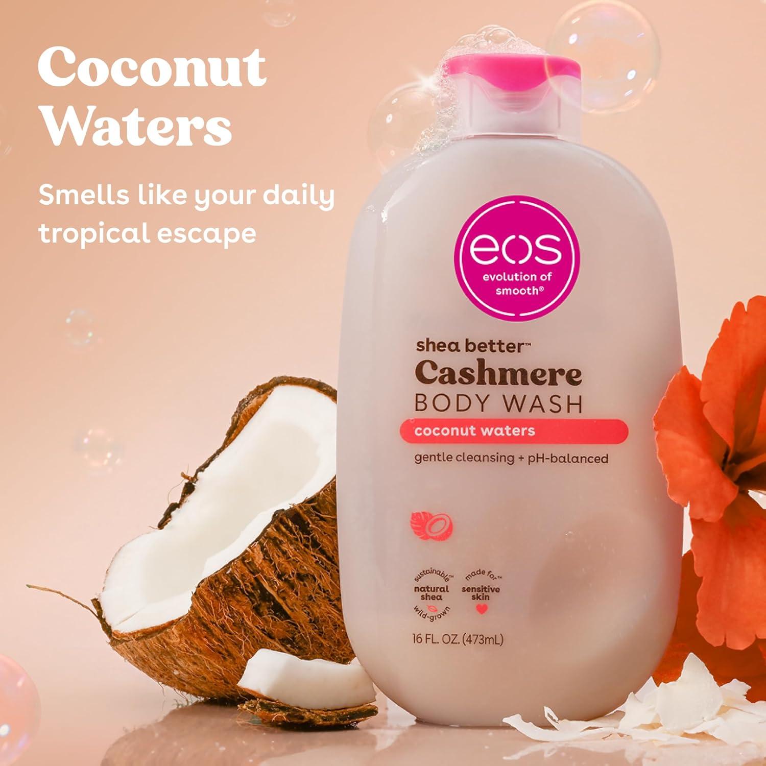 eos Cashmere Body Wash – Crème de Pistachio, Moisturizing Body Wash, Creamy Gel Formula, with Shea Butter, Glycerin, Vitamin E, pH Balanced, Sensitive Skin, Vegan, 16 fl oz(Coconut Waters)
