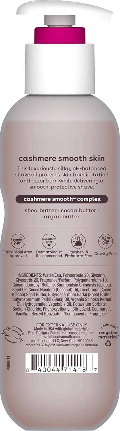 CASHMERE SMOOTH COMPLEX: eos Shave Oil is made with a moisture-rich blend of shea butter, cocoa butter, and argan butter to soften, hydrate, and cushion skin as you shave