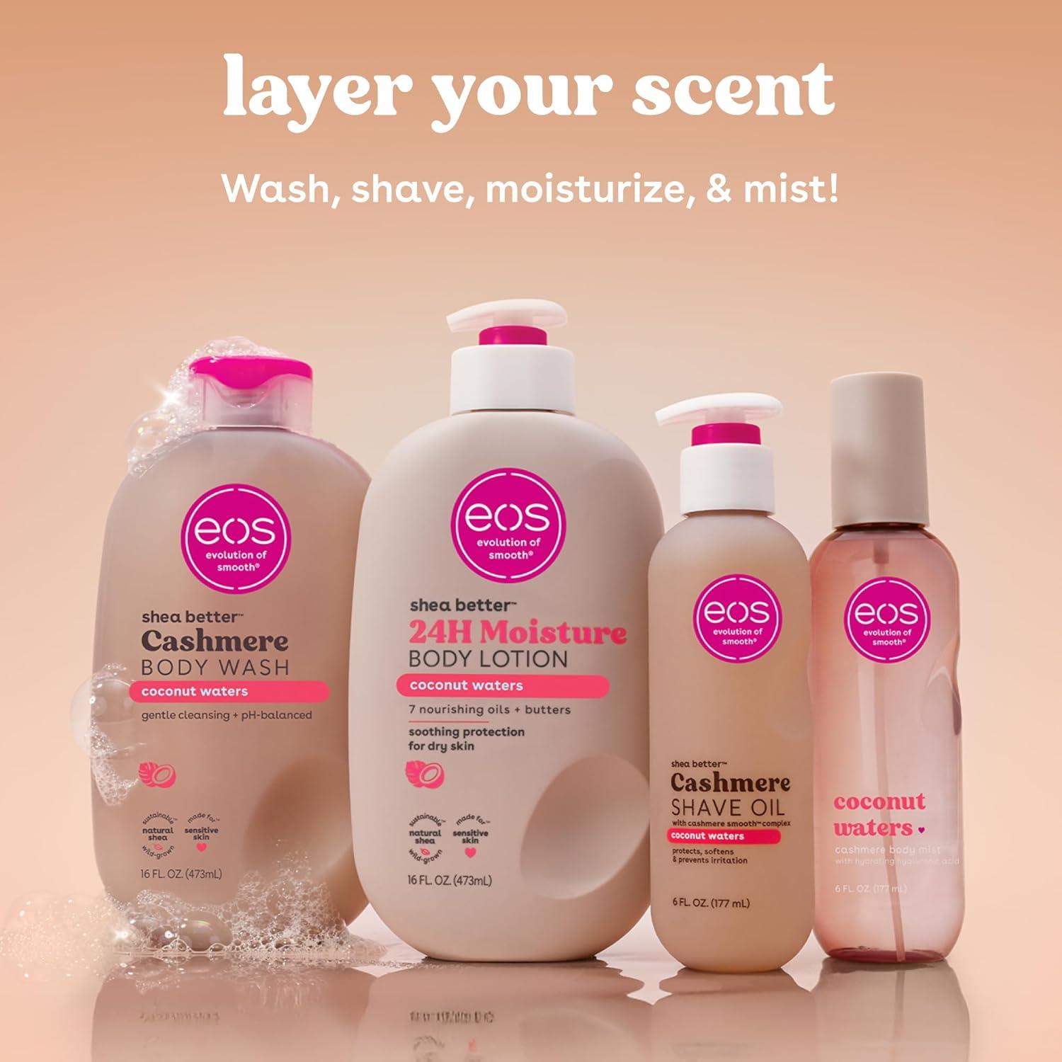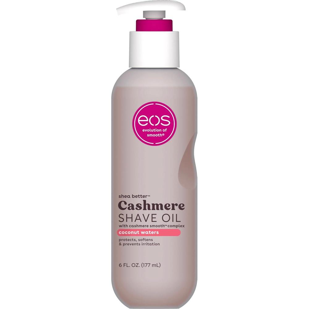 eos Cashmere Shave Oil – Coconut Waters, Moisturizing Shave Oil with Shea Butter & Glycerin, Helps Prevents Irritation & Razor Burn, Vegan, 6 fl oz(Fresh & Cozy)