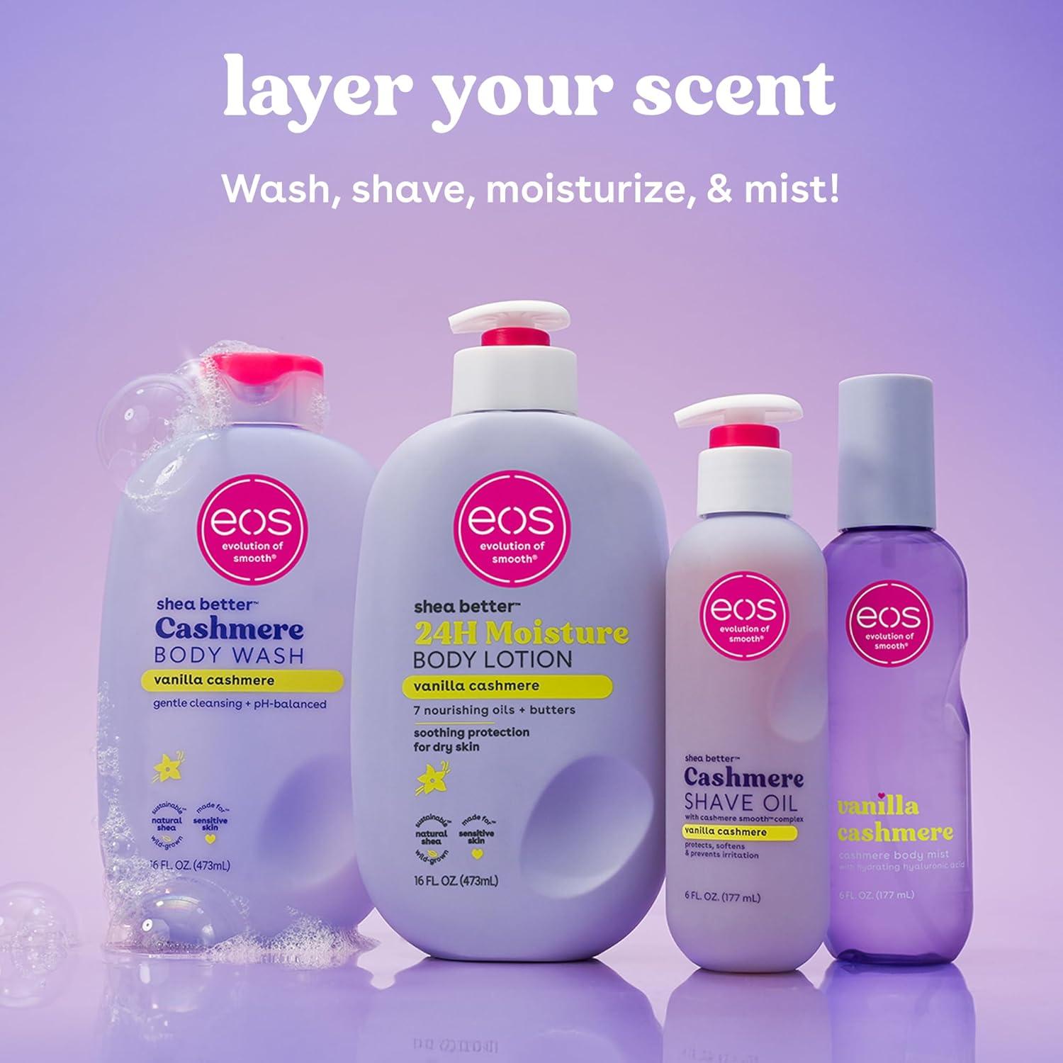 eos Cashmere Shave Oil – Coconut Waters, Moisturizing Shave Oil with Shea Butter & Glycerin, Helps Prevents Irritation & Razor Burn, Vegan, 6 fl oz(Vanilla Cashmere)