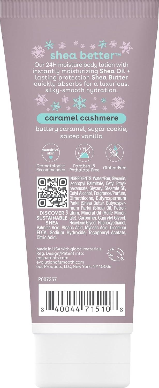 eos Shea Better Travel Size Body Lotion, Caramel Cashmere, Holiday, Limited Edition Skin Care, 24-Hour Moisture, Body Lotion for Women, travel size toiletries, Vegan, 2.5 fl oz(2.5 Fl Oz (Pack of 1))